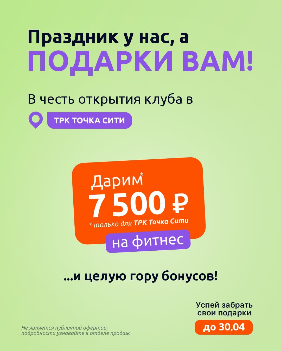 (Акция действительна для новых клиентов, и тех, кто не посещал клуб более 6 месяцев)